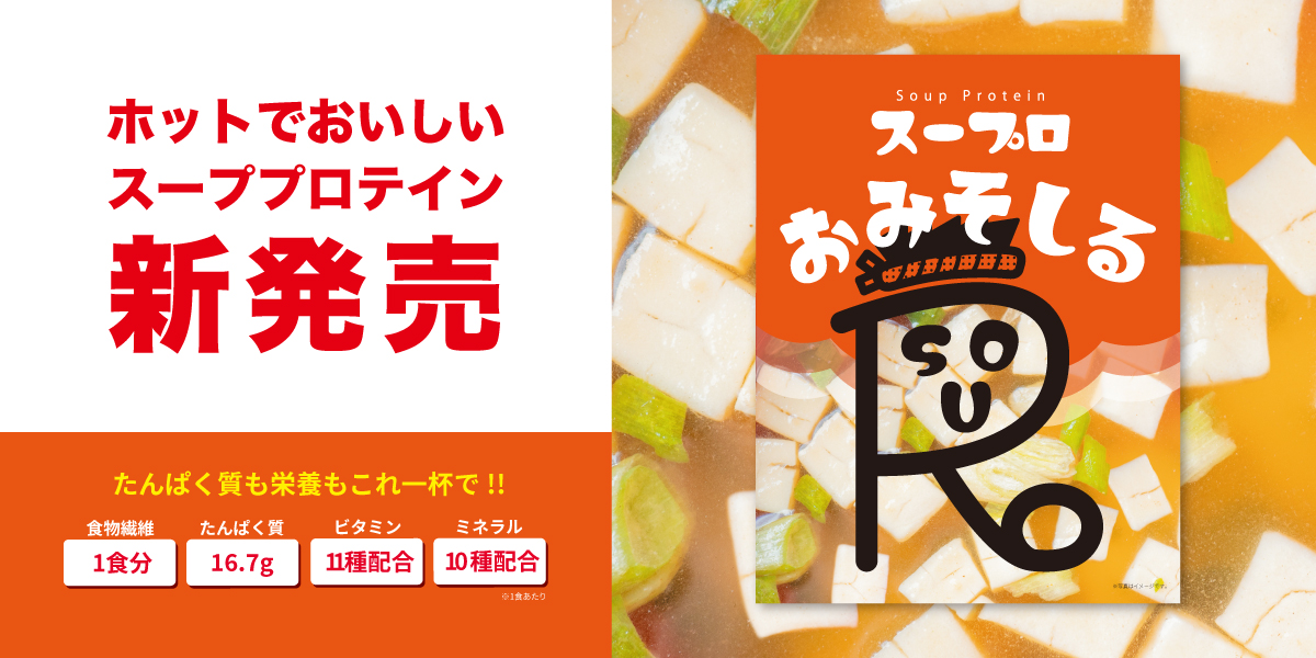 たんぱく質も栄養もこれ一杯で!ホットでおいしく栄養補給ができるスーププロテイン「スープロ」暗闇フィットネス®のパイオニアFEELCYCLEから第一弾としておみそしるが発売!