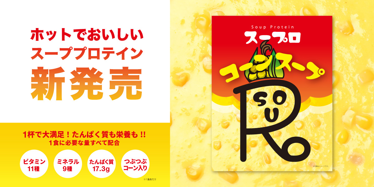 1杯で大満足!たんぱく質も栄養も!スーププロテイン「スープロ」第二弾コーンスープ風味が暗闇フィットネス®のパイオニアFEELCYCLEから新発売